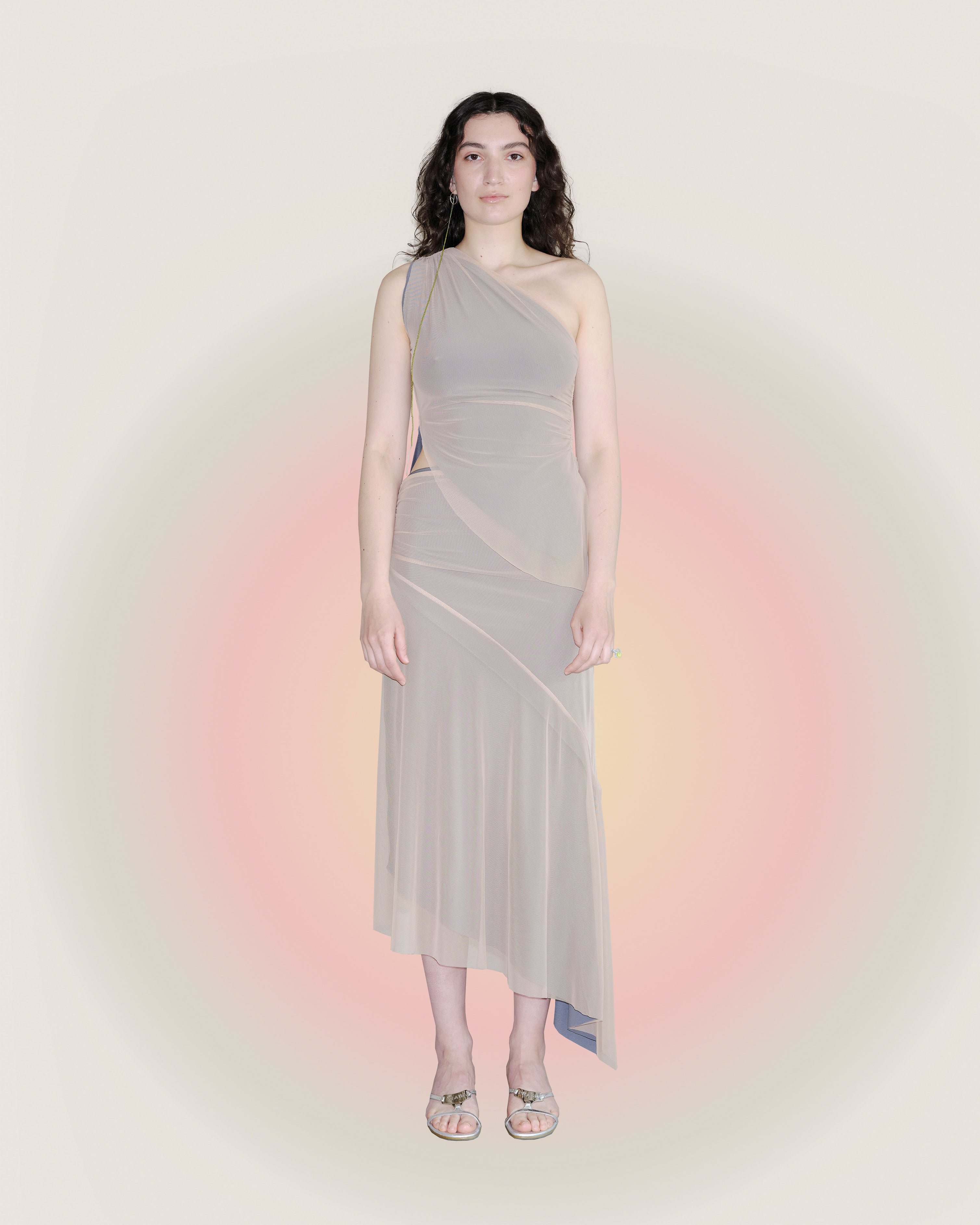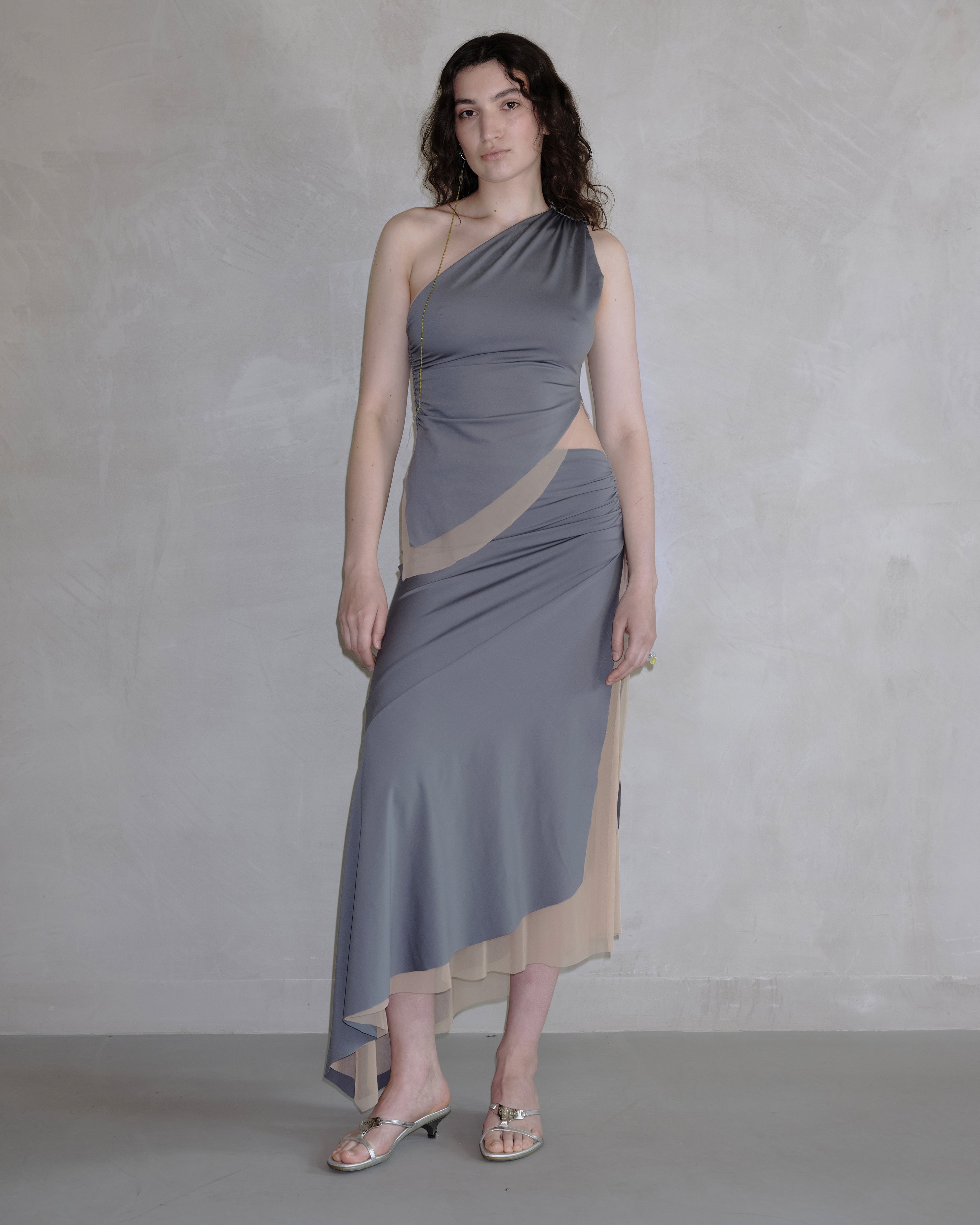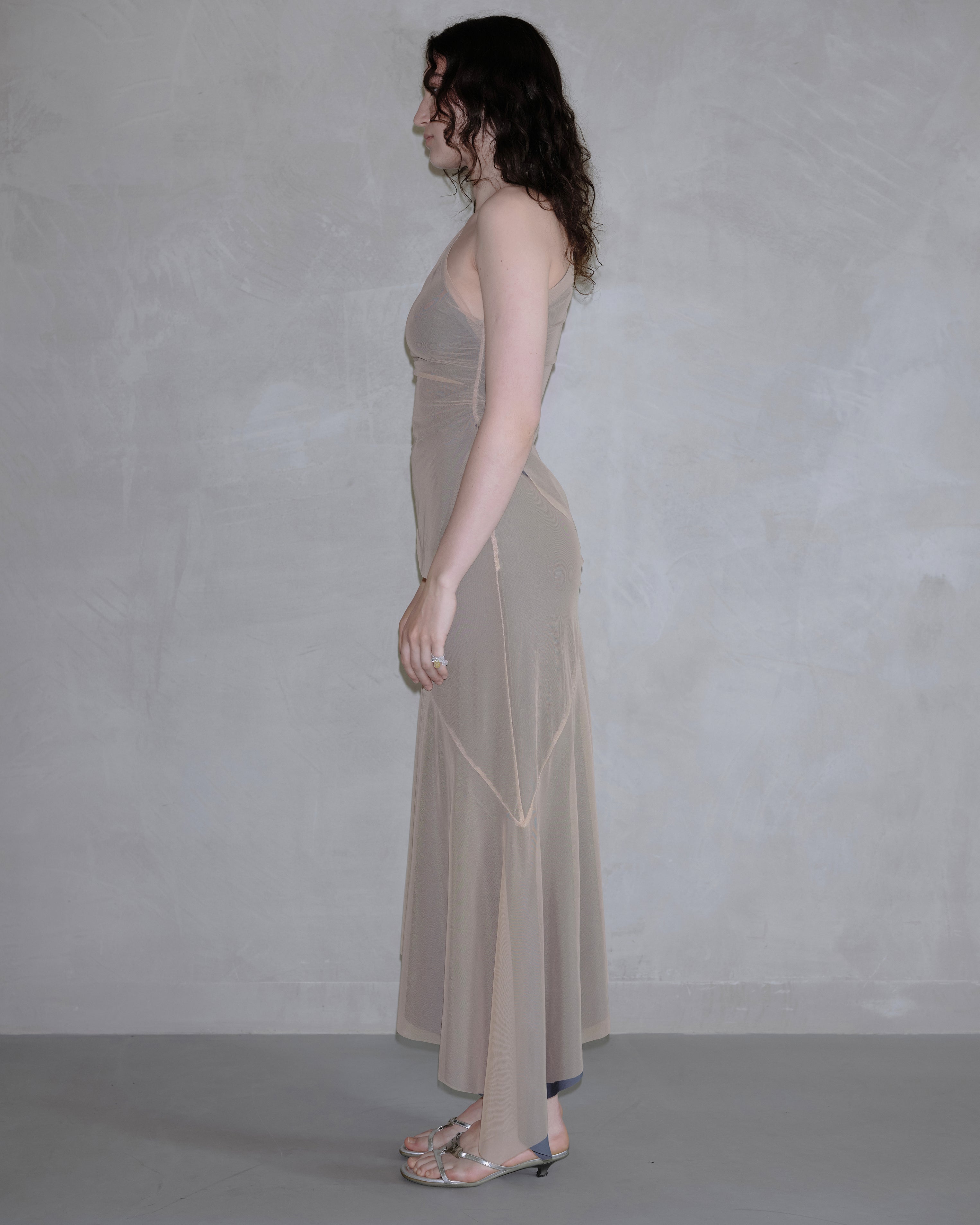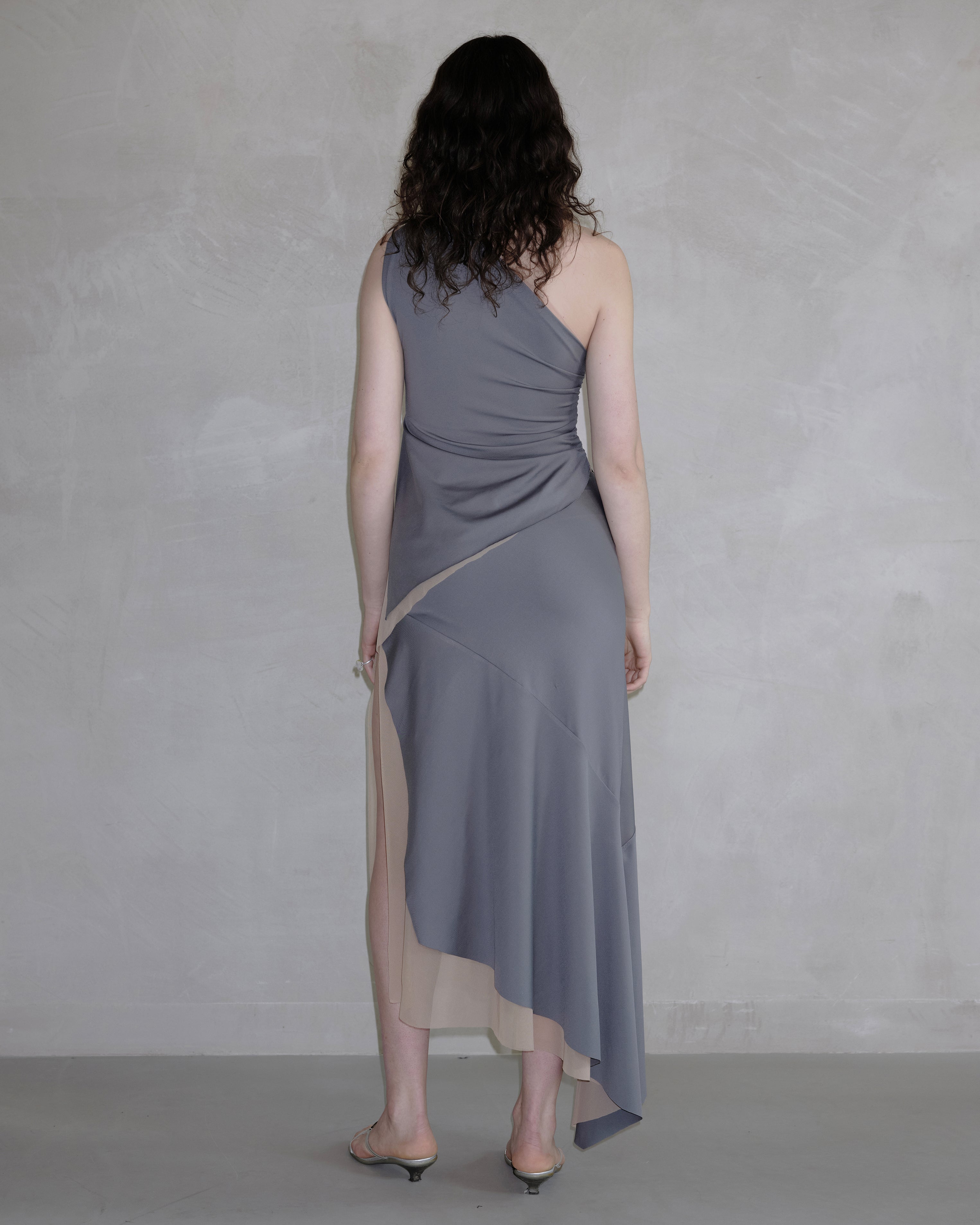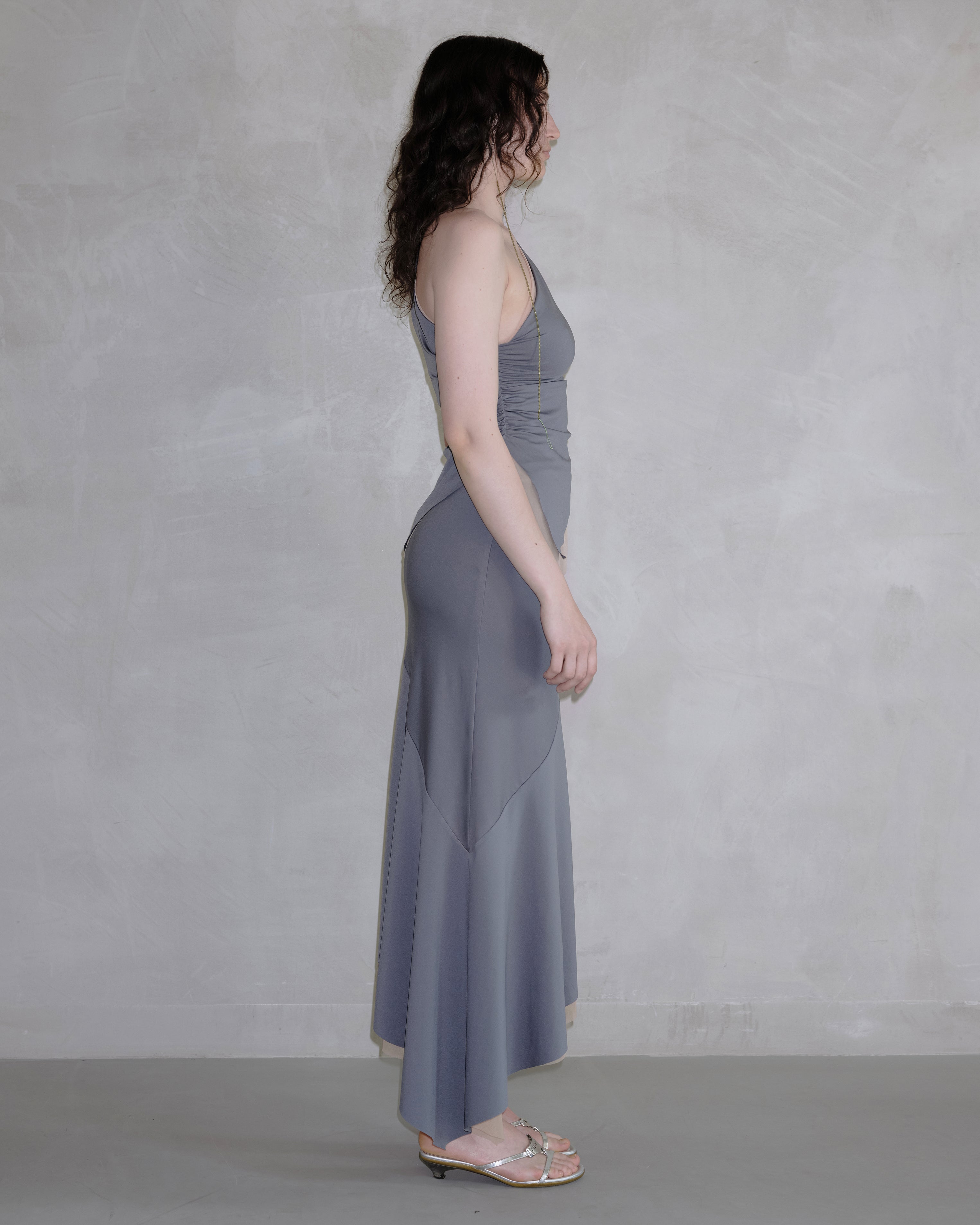 Raw edges, organic, leaf-like shapes define this reversible top. Asymmetric silhouette further enhances leafiness.
